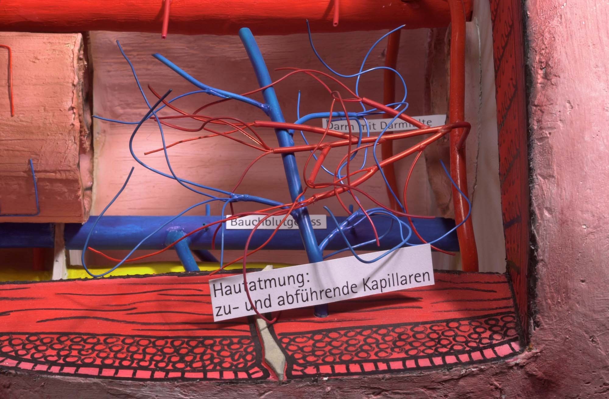 Unter der Haut befinden sich die Ring- und die Längsmuskulatur. Durch den ganzen Haut-Muskel-Schlauch ziehen sich von vorne bis hinten Darm, Bauchnervenstrang, Bauch- und Rückenblutgefässe. Der Rest der Leibeshöhle ist mit Körperflüssigkeit gefüllt.